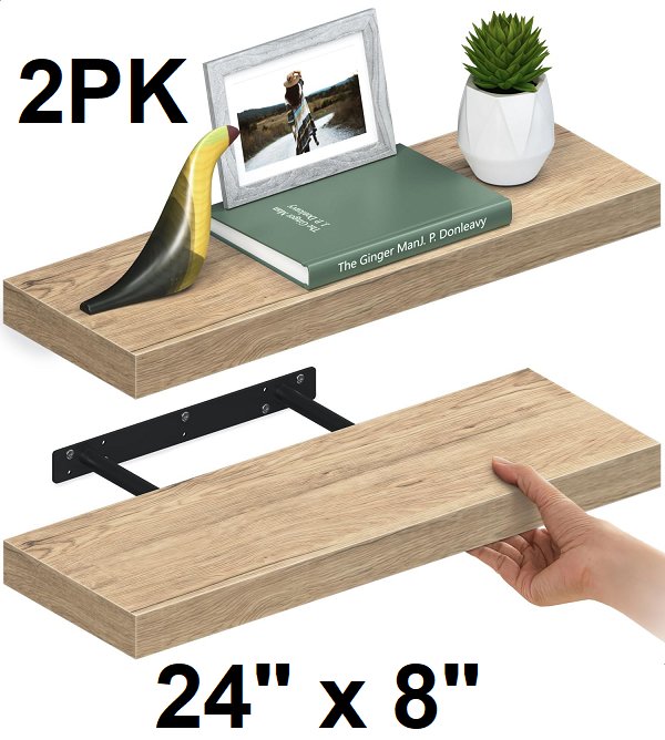 2pk Ballucci miami Floating Shelves - 24" x 8" - natural oak (model: ‎HAFS05NO-2)