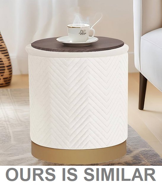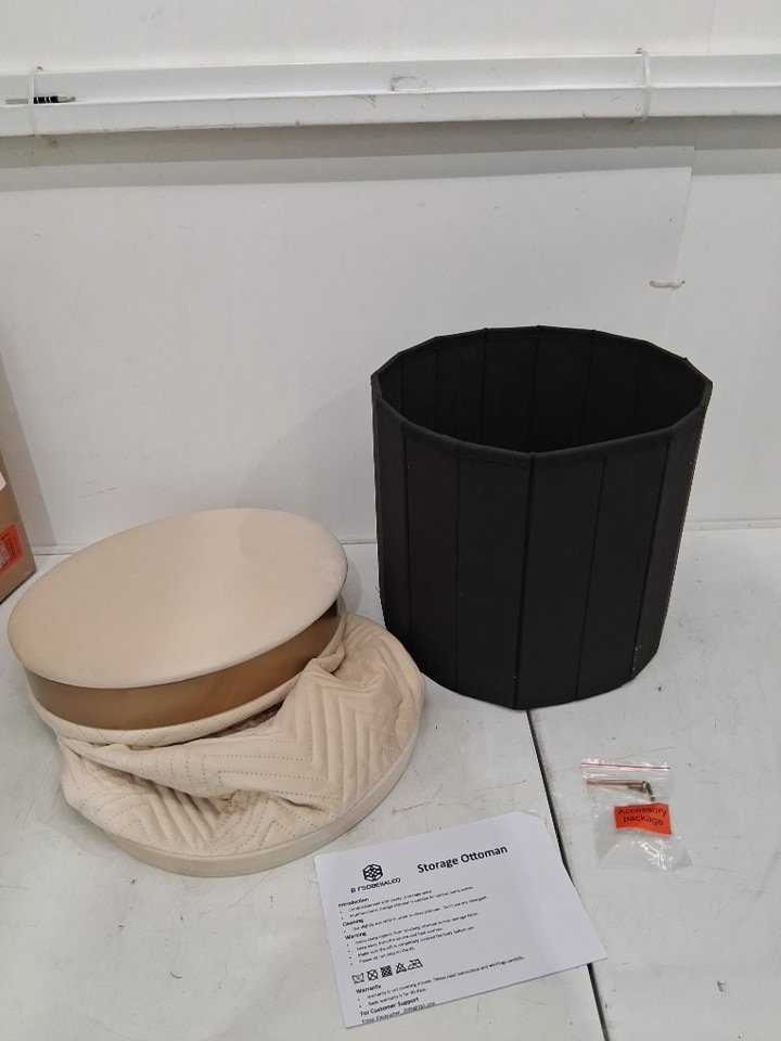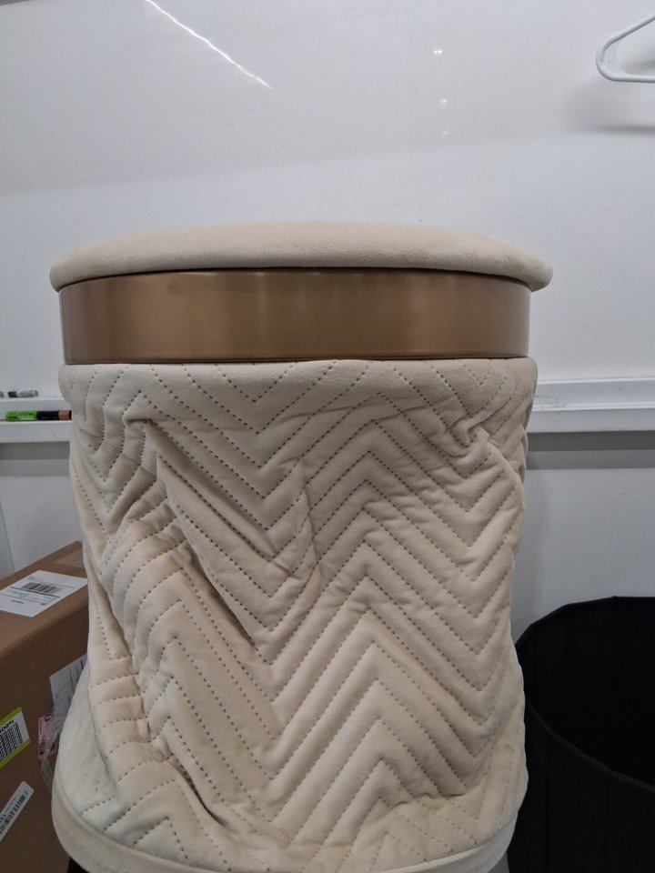 FOLDING Round VELVET Ottoman with Storage Pouffe - WHITE / GOLD