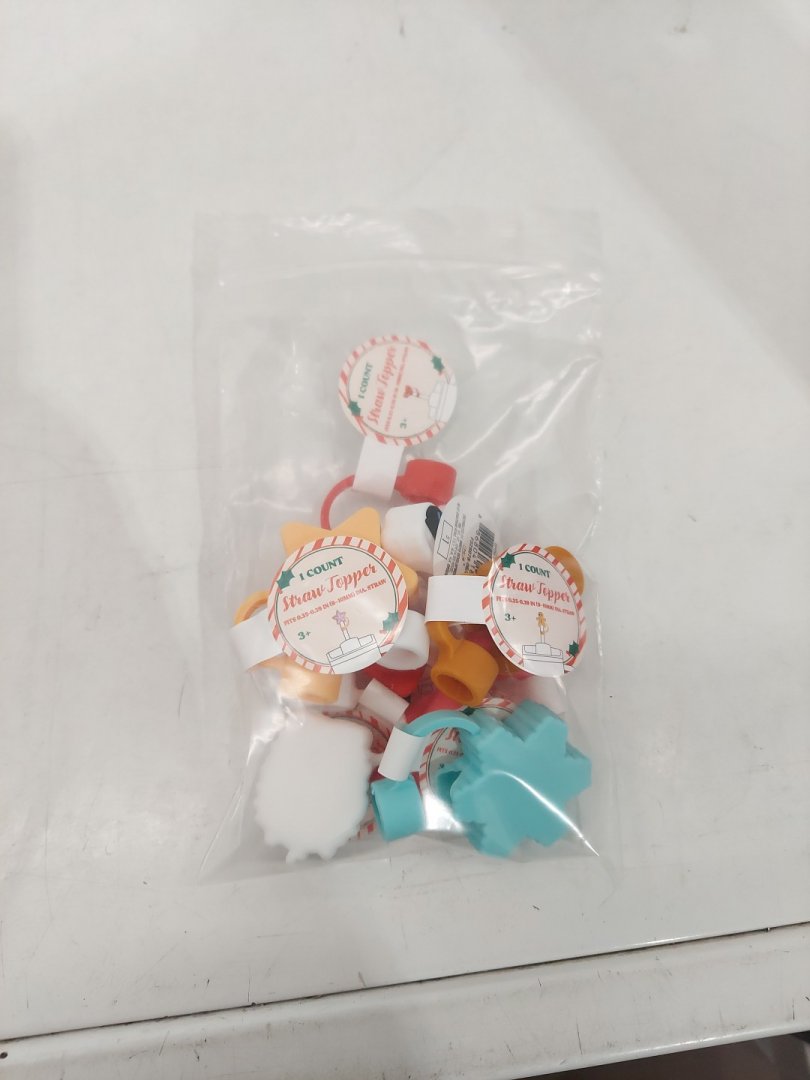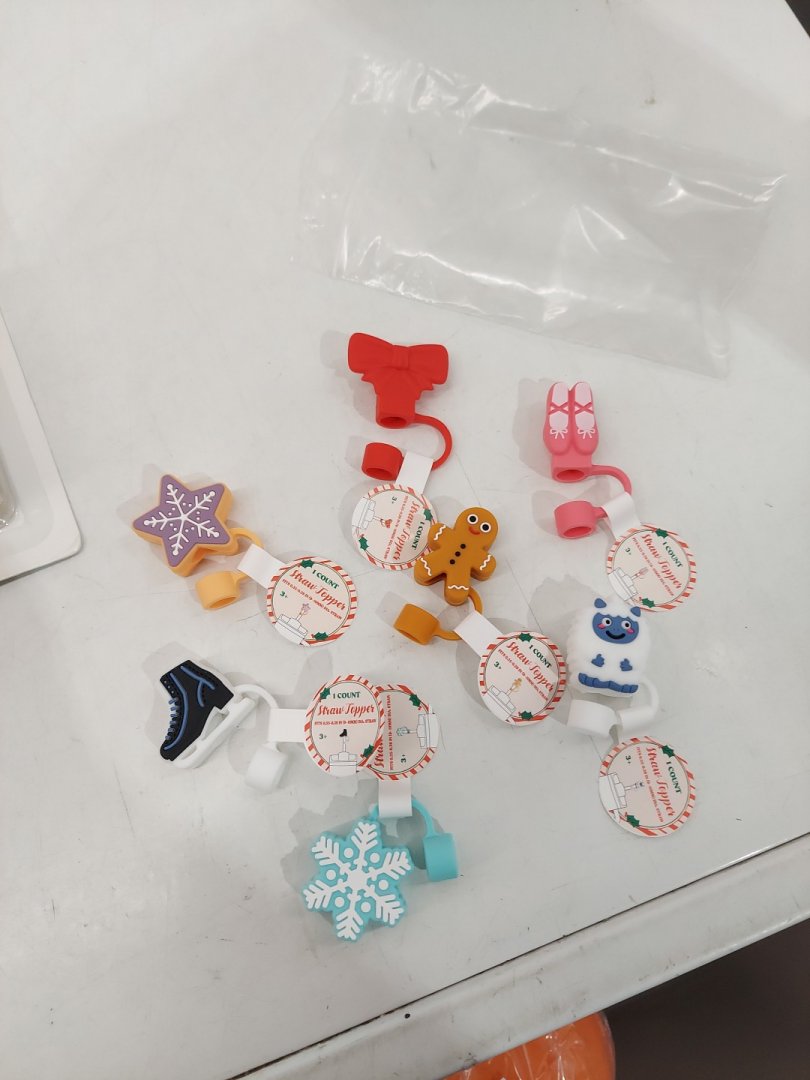 7PC ASSORTED CHRISTMAS/WINTER THEME STRAW TOPPERS - 9MM TO 10MM DIAMETER