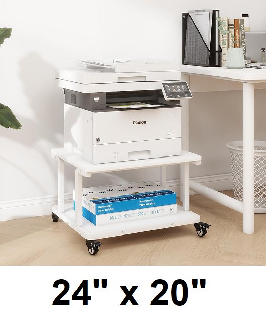 Natwind 2 Tier printer stand on wheels - hold up to 170lbs - 24" x 30" - white