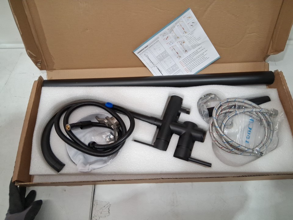 neierthodore 2 handle freestanding Bathtub Faucet with ground mount and hand sprayer - 46" - black
