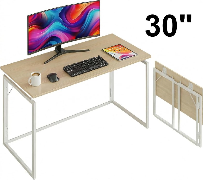 AXURA Folding Foldable Computer Desk for Small Spaces - 30" - White - (Model: ‎ZDZ01-01)