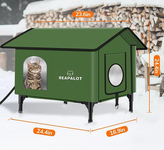 Reapalot heated outdoor cat pet house elevated for multiple cats - 24.5" - Green (Model: PL4050)