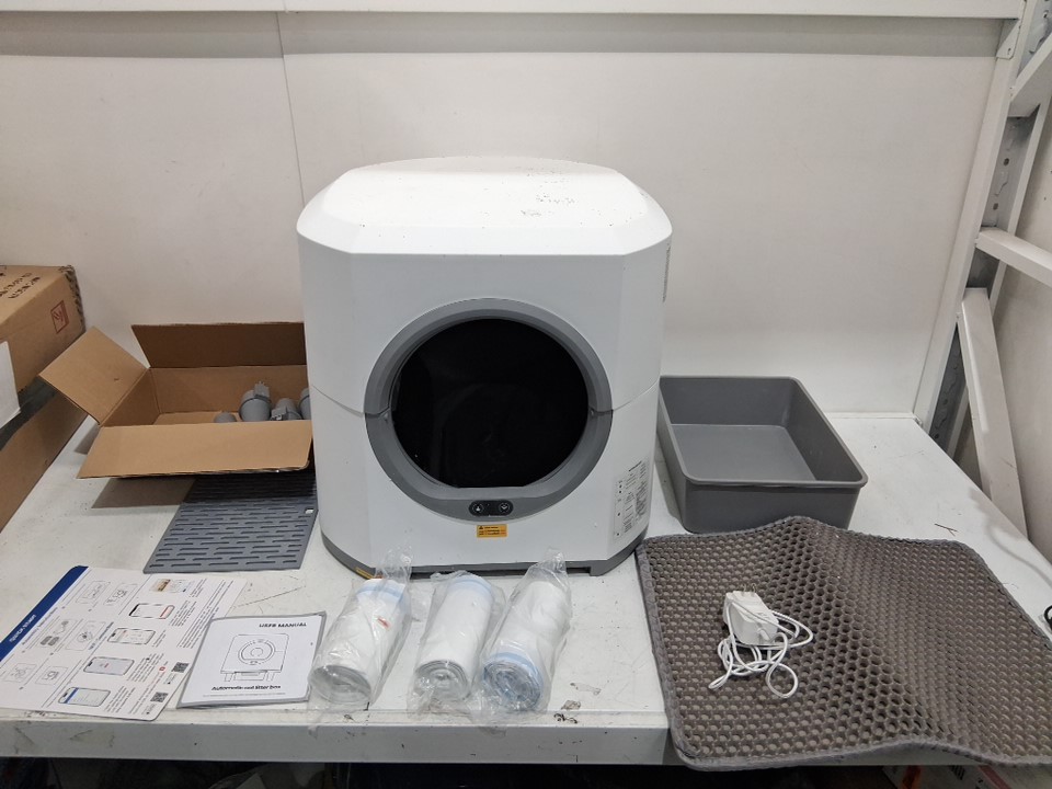 Item has some cat litter/scuffing/cat hair from previous use. Tested for power only.