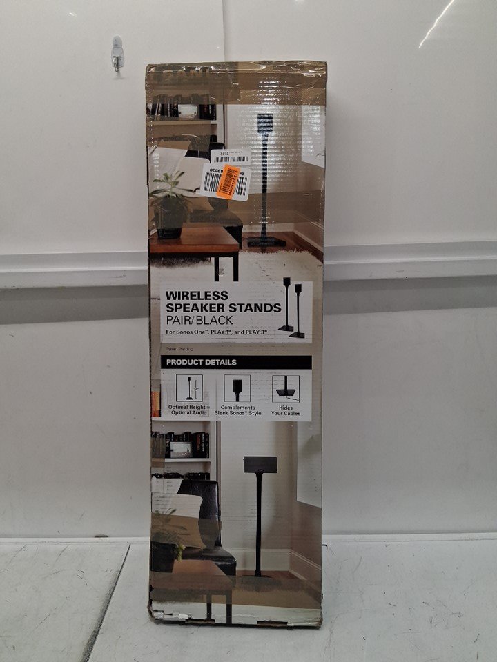 2pk sanus wireless sonos floor stands for speakers compatible with Sonos One, Play:1, Play:3 with built in cable management and audio enhancement design, 10" x 12.9" x 34", black, (model: ‎WSS22-B1)