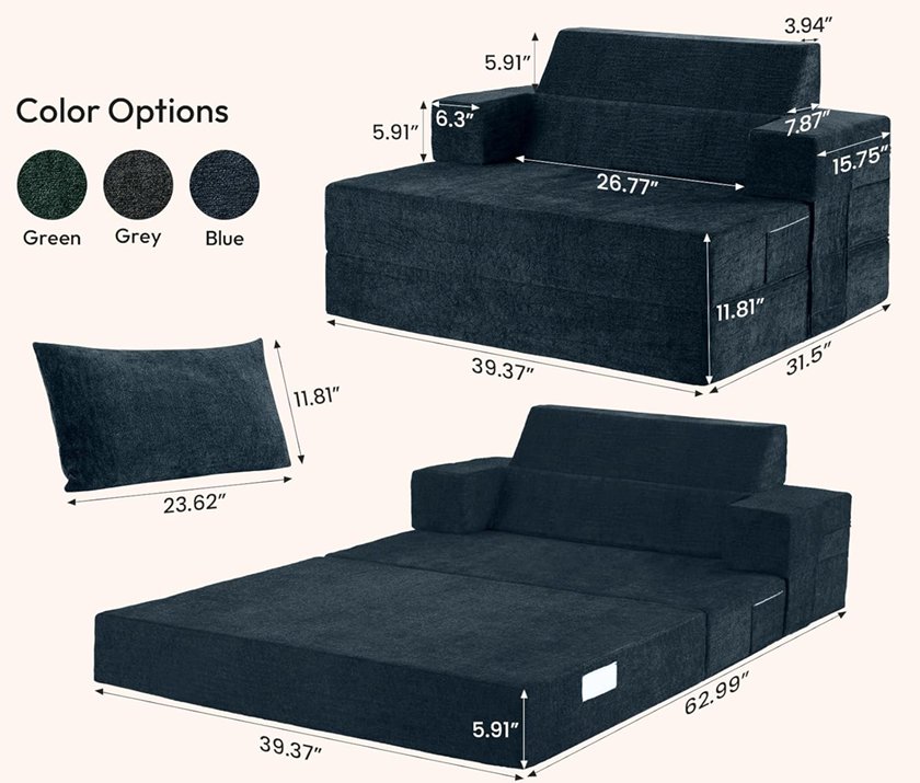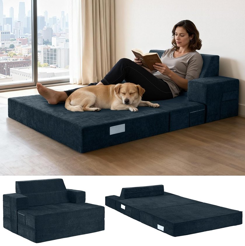 sunable 4-in-1 convertible folding foam sofa - grey - (model: SA-SF006TW-GY-CA)