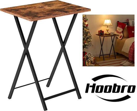 HOOBRO Portable FOLDING TABLE Easy Assembly and Storage - 26.2" X 18.9" X 14.2" - RUSTIC BROWN/BLACK (MODEL:BF15BZ01)