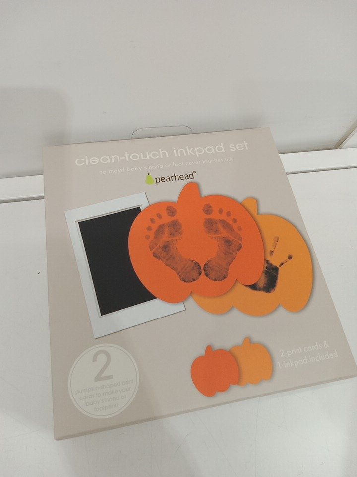3pc Pearhead Clean-touch inkpad set with pumpkin print card for baby's hand or foot print