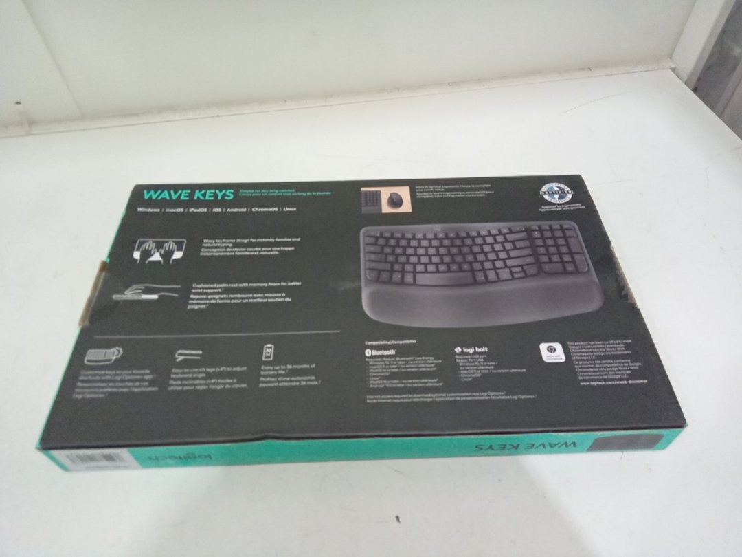 logitech wave keys wireless bluetooth ergonomic keyboard - black/grey (model: ‎yr0096)