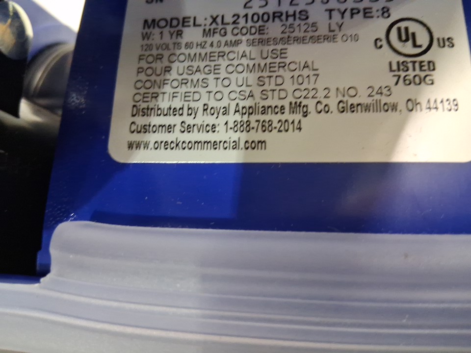 ORECK COMMERCIAL CORDED UPRIGHT VACUUM - 35FT CORD - BLUE (MODEL: XL2100RHS)
