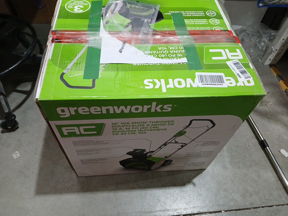 GREENWORKS CORDED SNOW THROWER - 10 AMP - 16" clearing width - green/black (MODEL: SNA103)