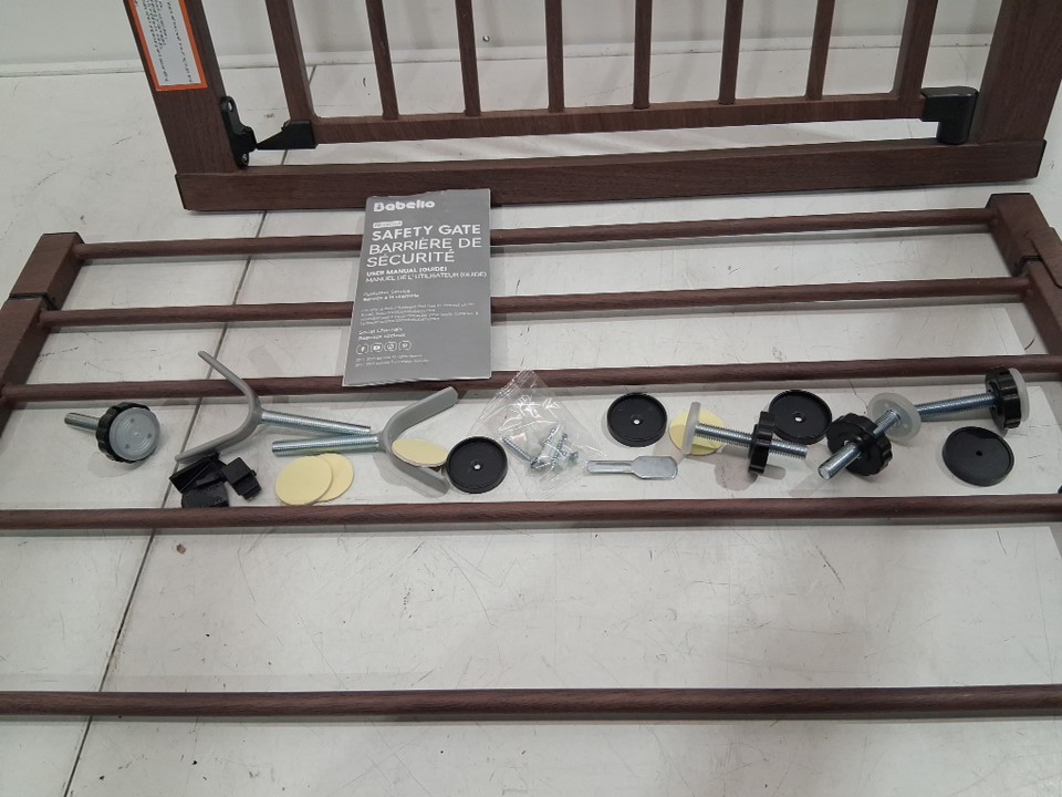 the bottom of the gate has a piece broken and some scuff marks on gate parts, see photos.