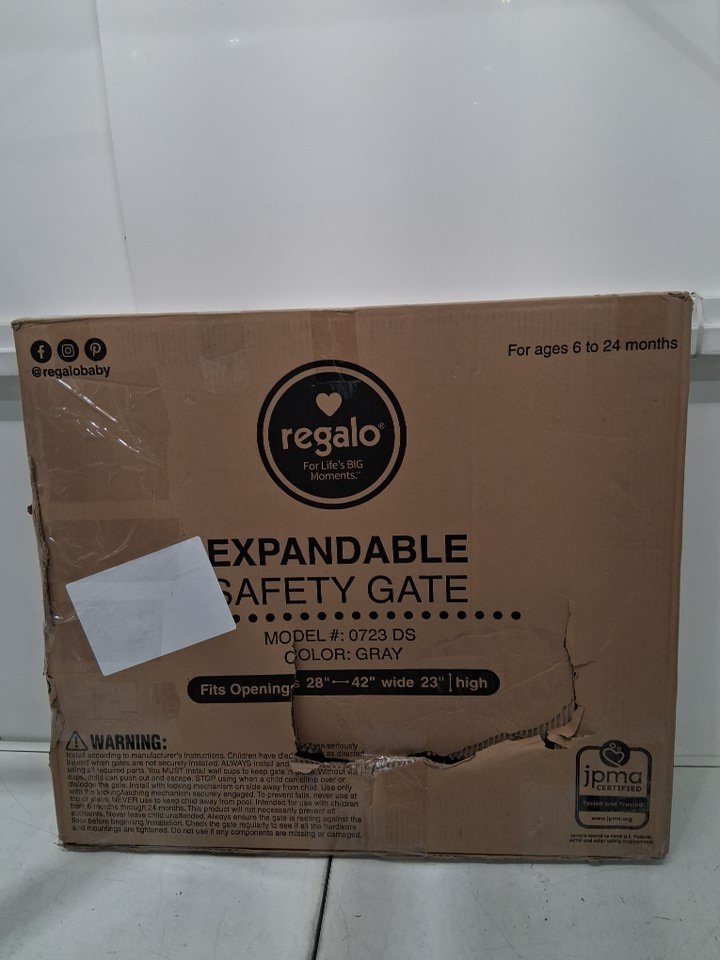 regalo plastic expandable safety gate - 28" to 42" x 23" - grey (model: 0723ds)