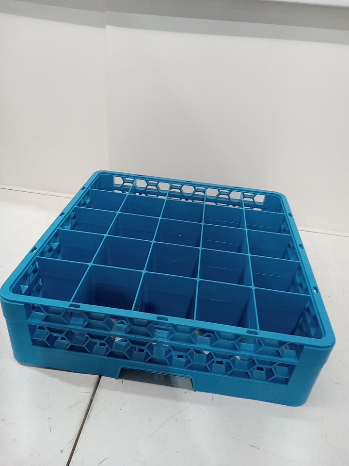 Carlisle FoodService Products Opticlean Plastic Divided Glass Rack - 19.8"x19.8"x5.5" - blue