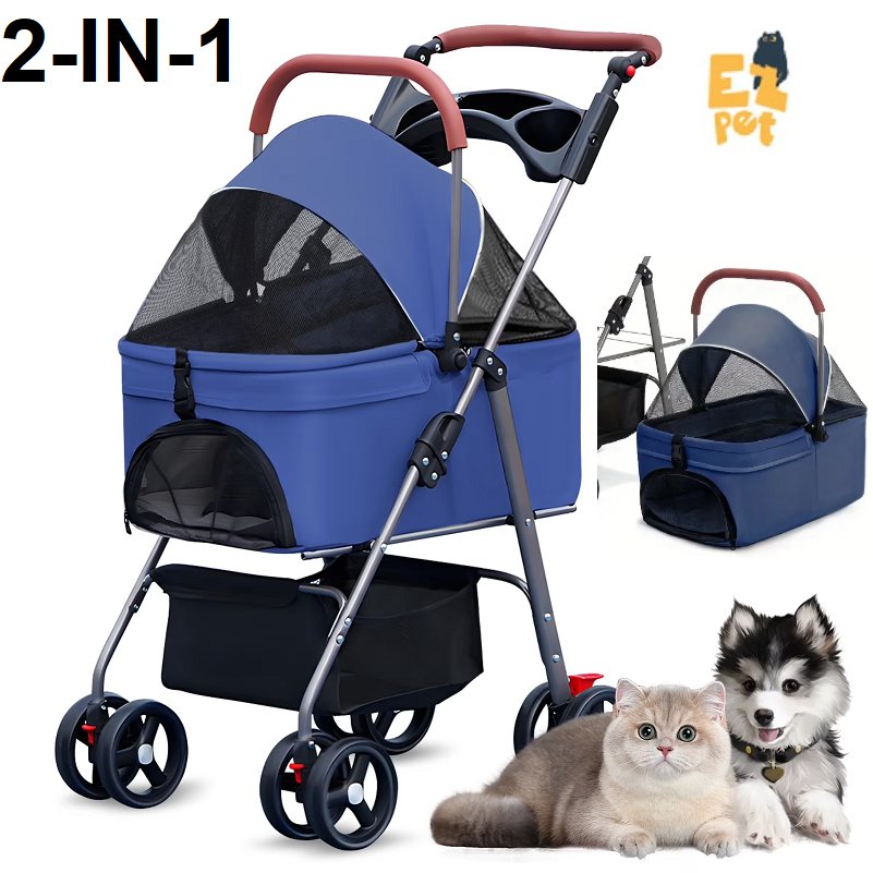 EZpet Pet Stroller, with detachable carrier - blue (model: GT06H)