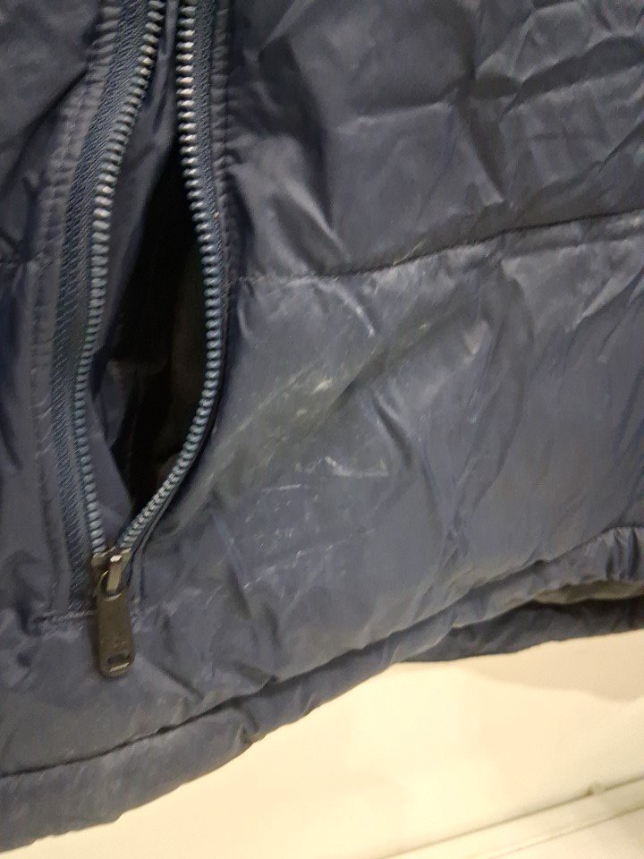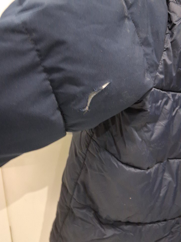 please note left sleeve has a tear in back of arm and some dust marks on the front of the coat that could possibly be washed
