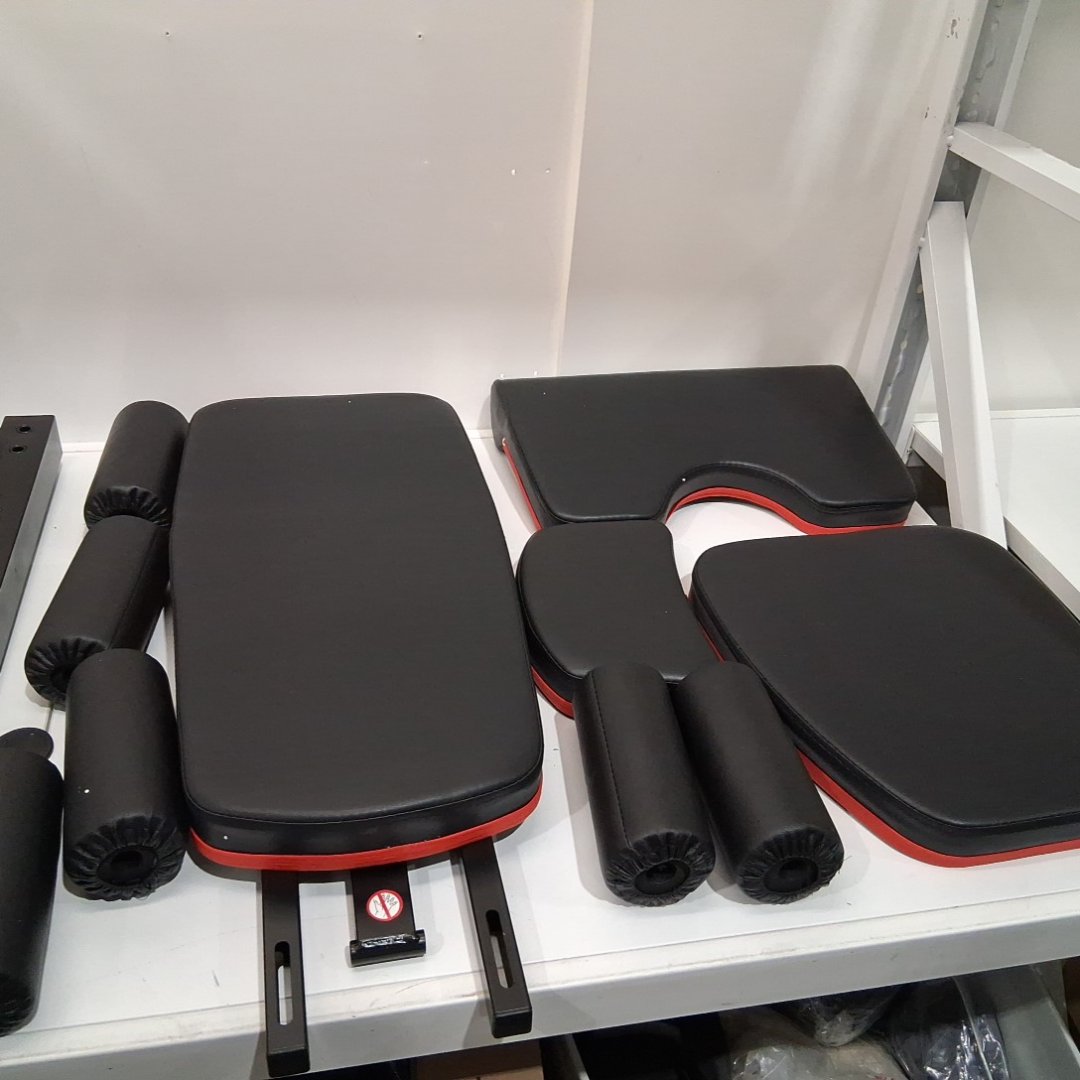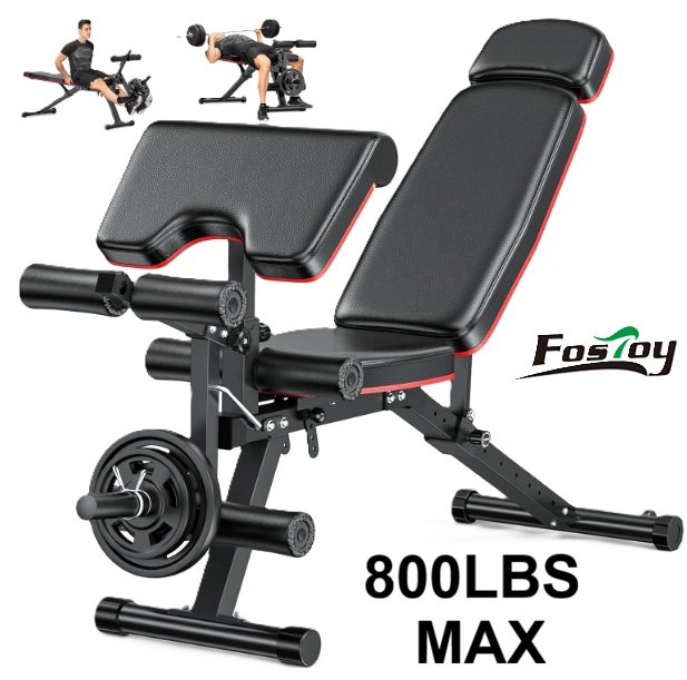 Adjustable Incline Decline FLAT Weight Bench Press with Extended Headrest and Leg Extension - 800LBS MAX - BLACK/ RED (MODEL: ‎WB03-1)