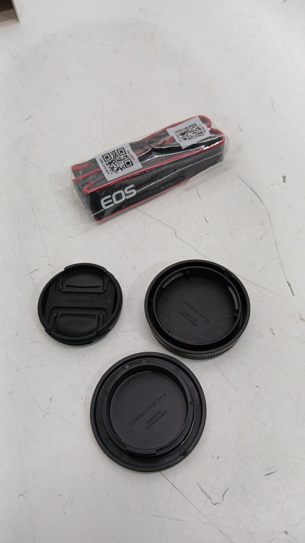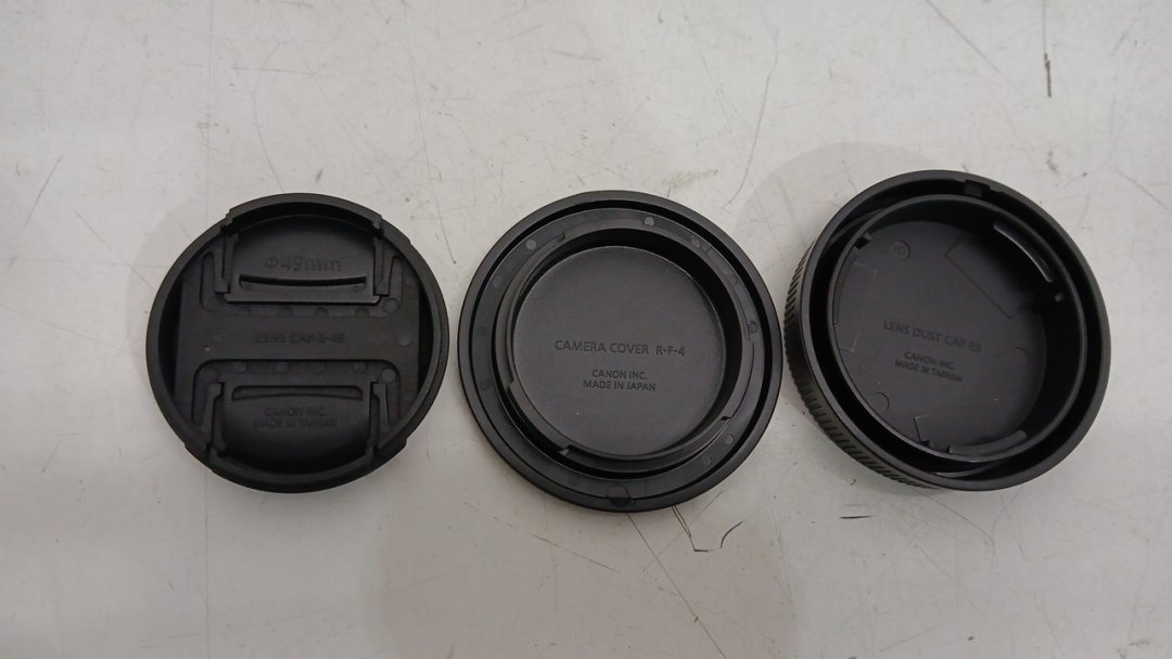 4pc canon camera accessories - 49mm lens cap/r-f-4 camera cover/ e8 lens dust cap and strap