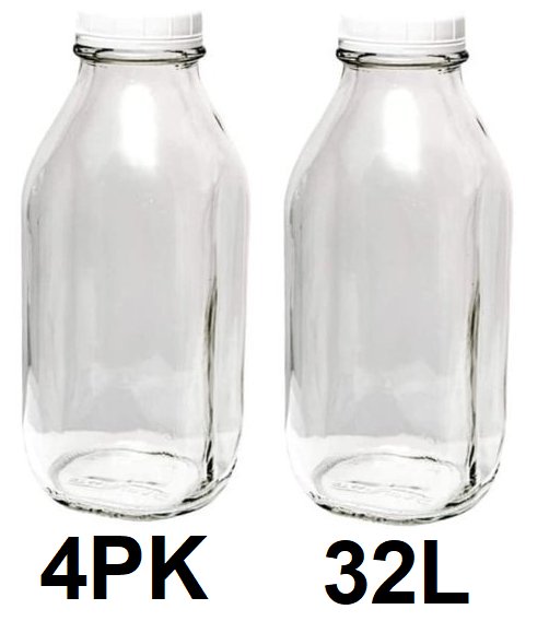 4pk Unbranded Milk clear glass bottles - 32l - clear/white
