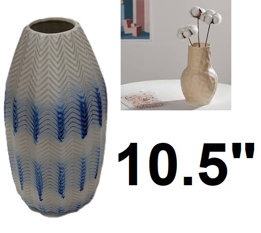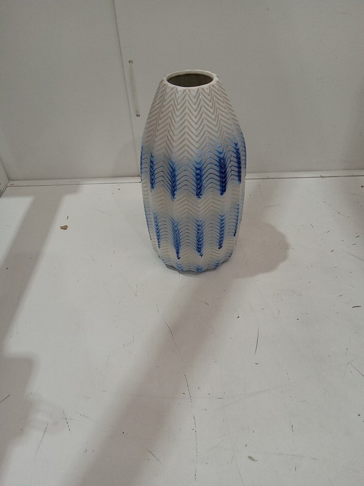 decorative chevron pattern vase - 10.5" - white/blue
