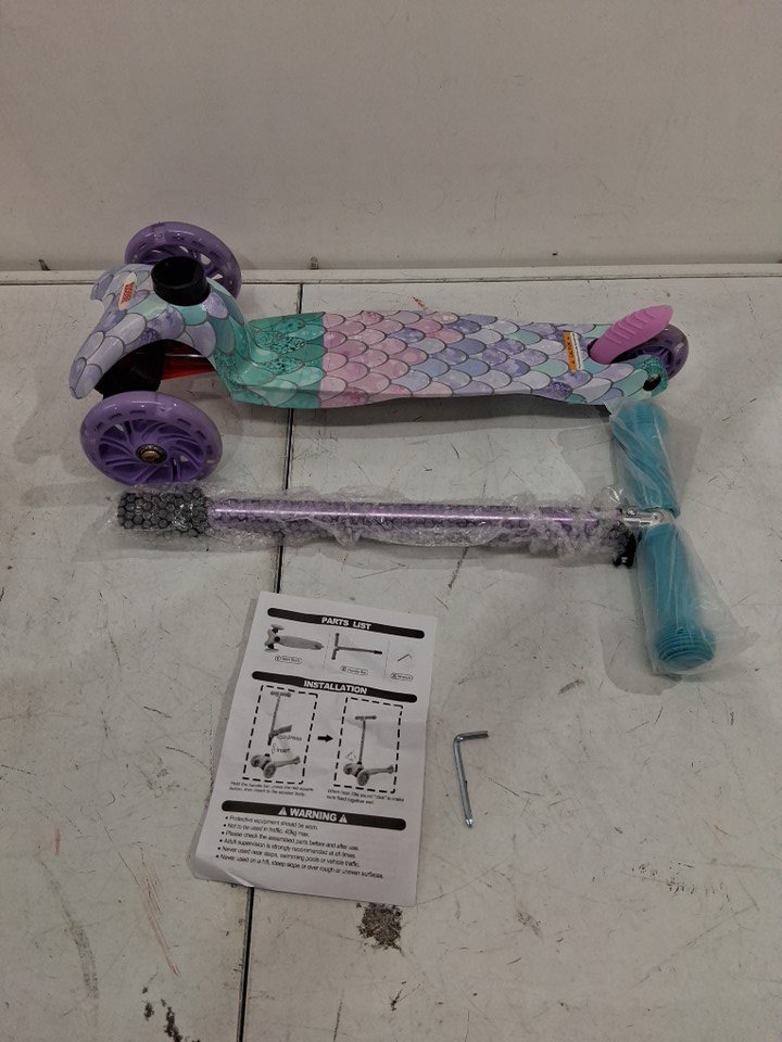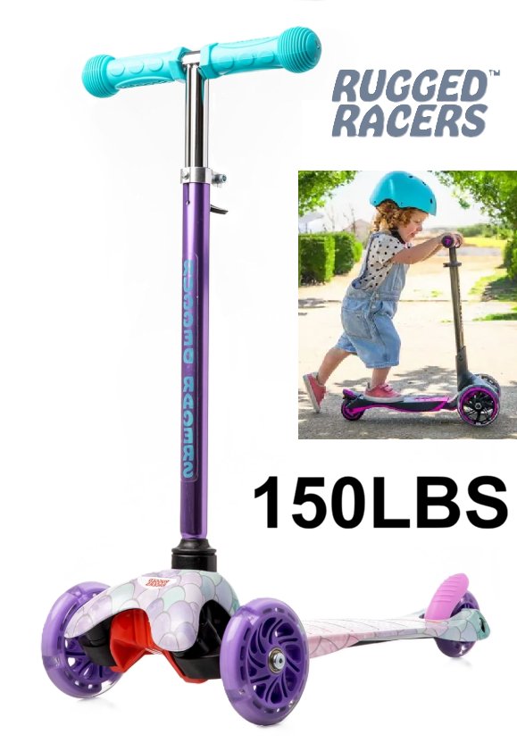rugged racers mini deluxe 3 Wheel Kick Scooter with Led and Adjustable Height - 3 to 6 years - 150lbs max - mermaid theme