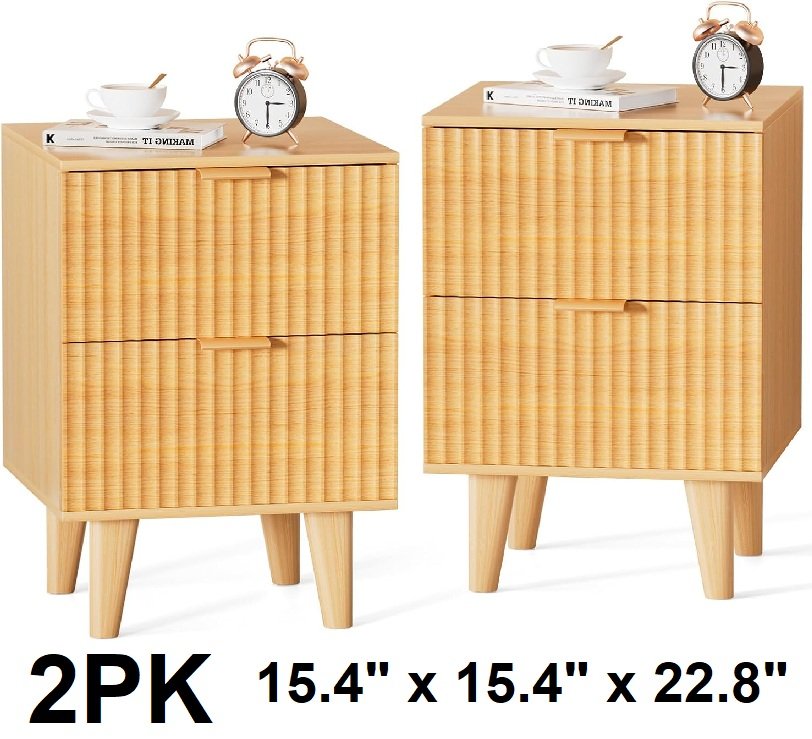 2pk urban deco fluted Mid Century Modern Nightstands - 15.4" x 15.4" x 22.8" - natural (model: st4-368blwctg-2pk)