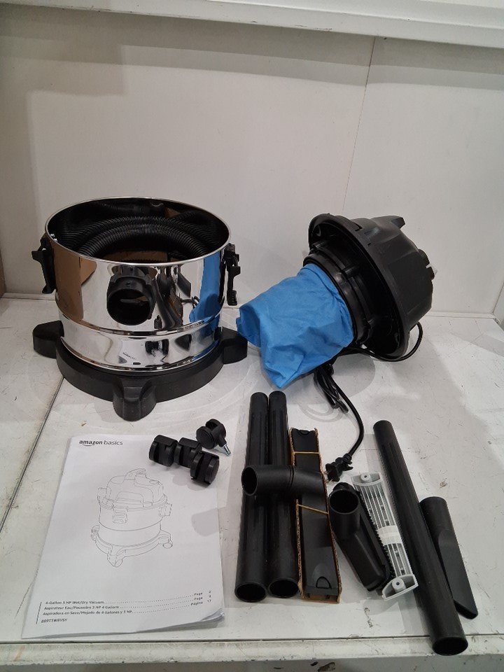 AMAZON BASICS STAINLESS STEEL WET/DRY VACUUM - 3HP - 4GAL - SILVER (MODEL:VO407S)