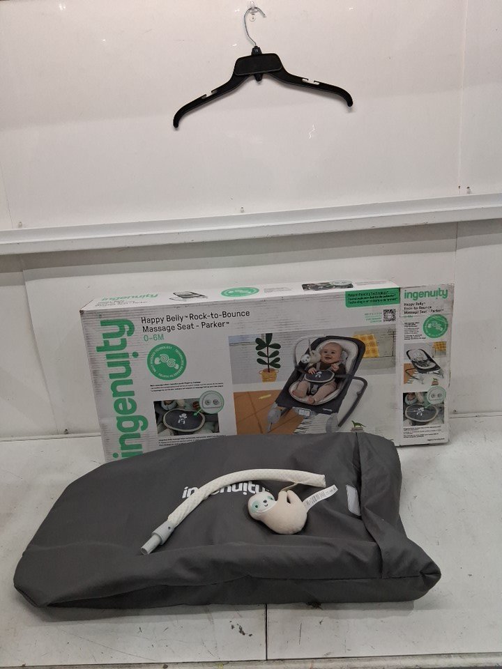 Ingenuity Happy Belly Rock-to-Bounce Massage Seat - 0 TO 6 MONTHS - PARKER/GREY