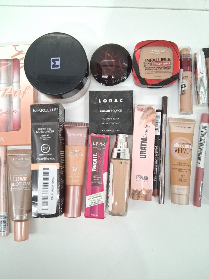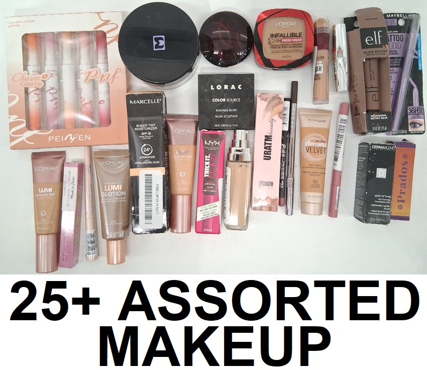 25+ ASSORTED MAKEUP PRODUCTS - assorted brands, shades and finishes - lipstick / powder / lip balm / foundation / brow gel / lip liner / eyeliner / blush