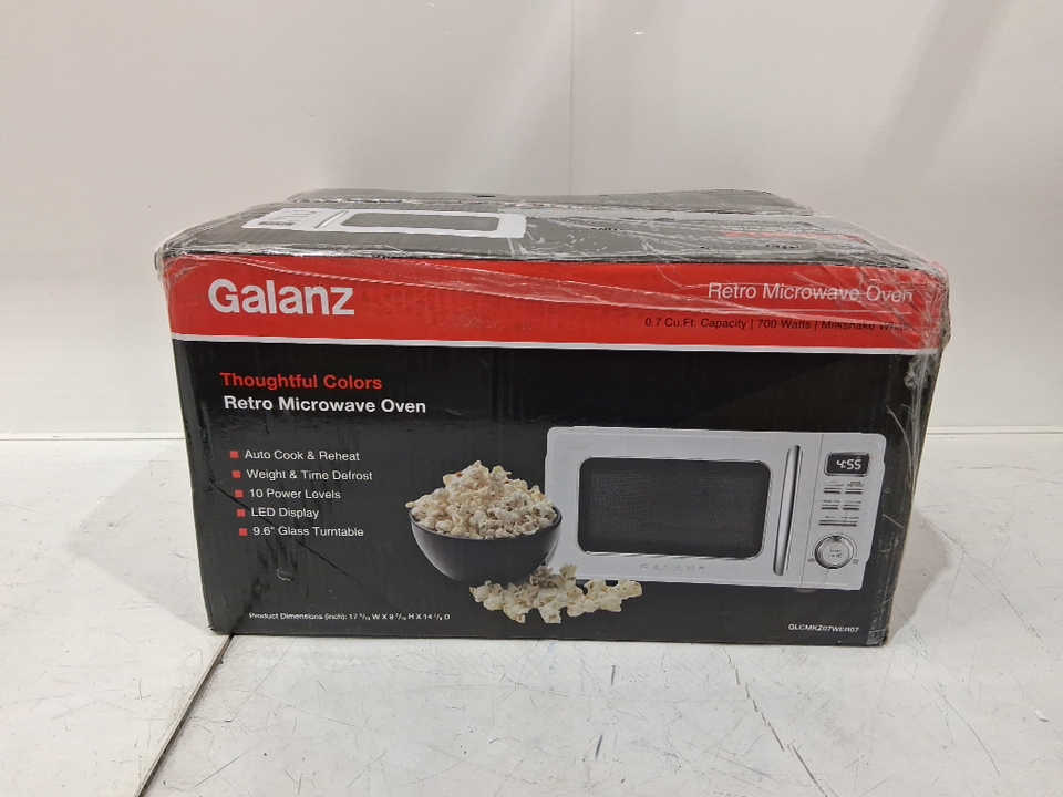 GALANZ RETRO STYLE COUNTERTOP MICROWAVE OVEN - 0.7CU.FT. - WHITE (MODEL: GLCMKZ07WER07)