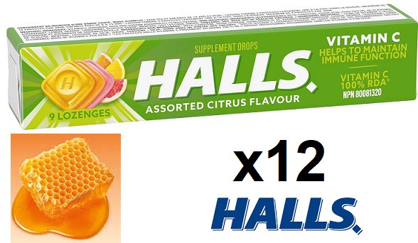 12 (9 LOZENGES) HALLS Vitamin C Lozenges Supplement Drops - ASSORTED CITRUS FLAVOUR