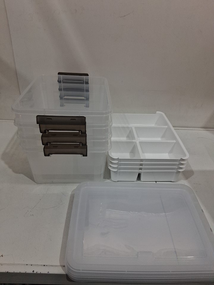 4PK Citylife Plastic Storage Bins with Removable Trays - 17QT - white/clear
