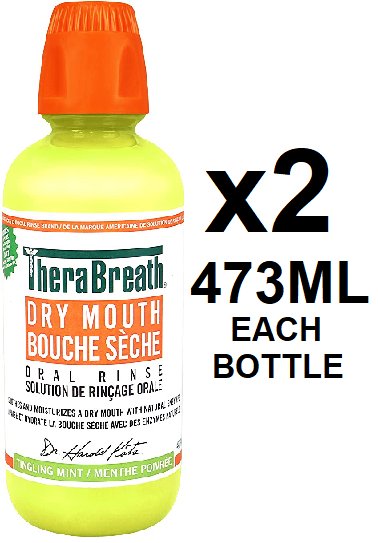 2 THERABREATH DRY MOUTH ORAL RINSE - TINGLING MINT - 473ML PER BOTTLE