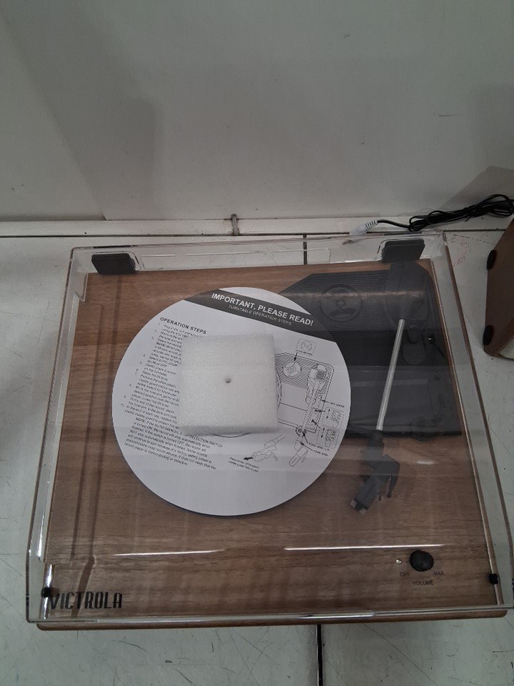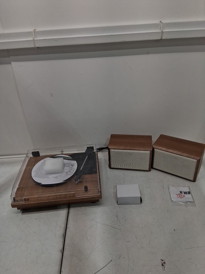 Victrola The Kingfield Bluetooth Record Player Shelf System with Bookshelf Speakers - Belt Drive, 3-Speed, 3.5mm Jack - natural (model:vm-137)