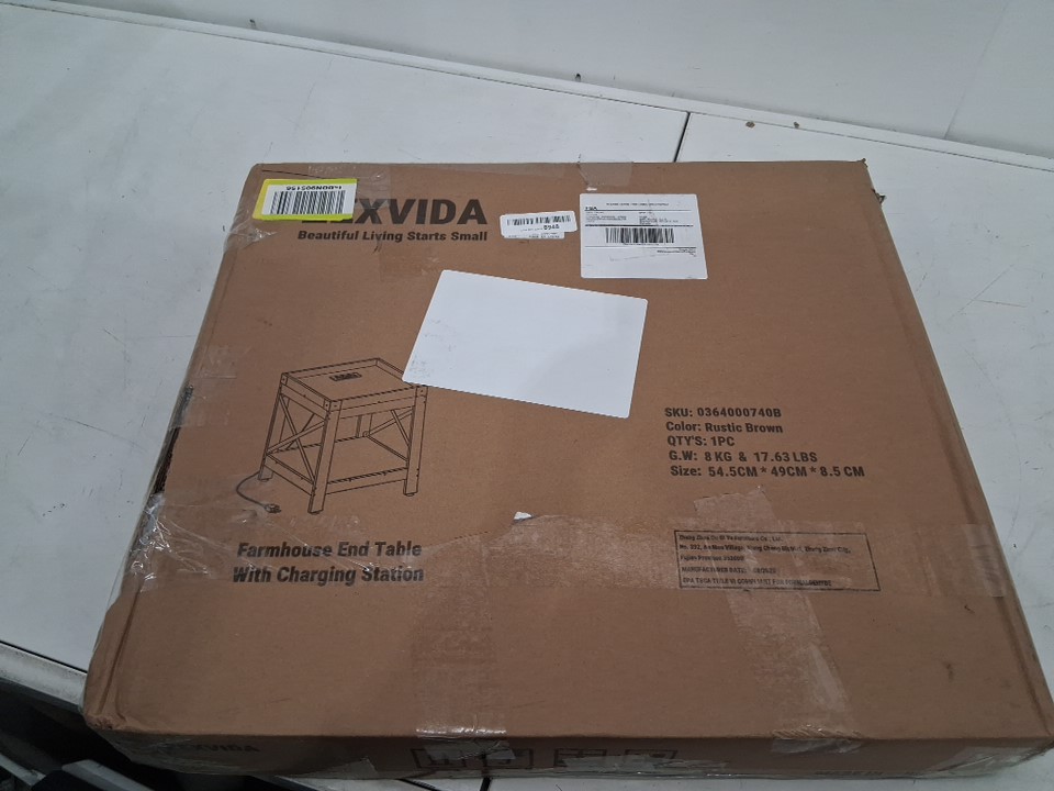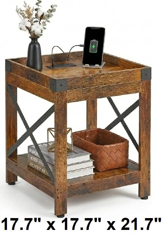 zexvida farmhouse square 2-tier side end table with charging station - 17.7" x 17.7" x 21.7" - rustic brown
