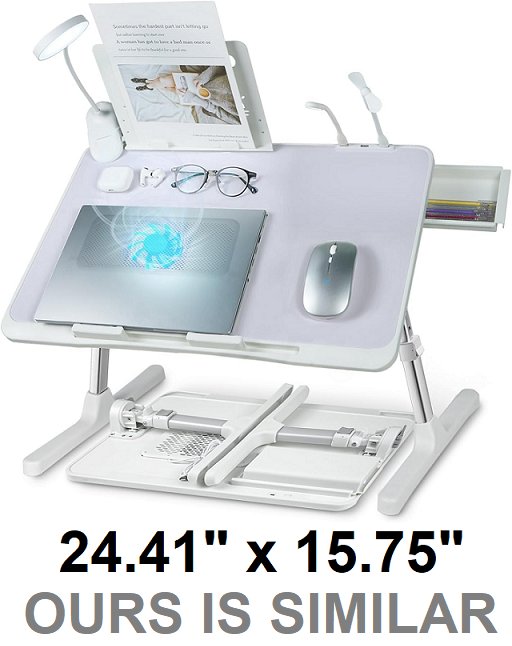 Laptop FOLDING Lap Desk with Cooling Fan AND Reading lights- 24.41" x 15.75" - GREY/PURPLE