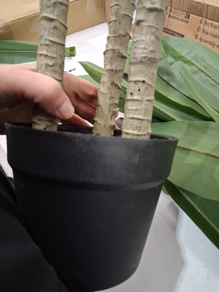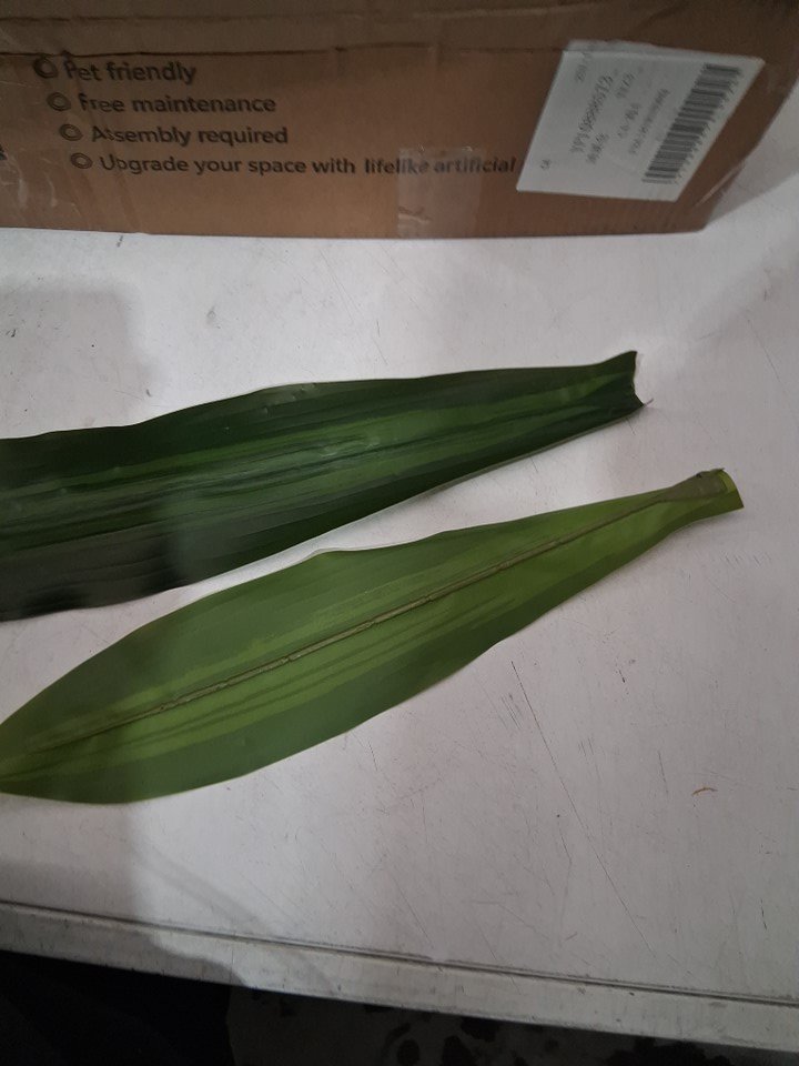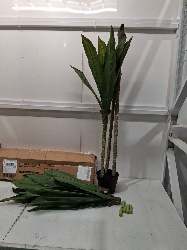 item has some scratch marks / missing paint on pot and 2 of the leaves have fallen off / some cuts to leaves all indicating prior use