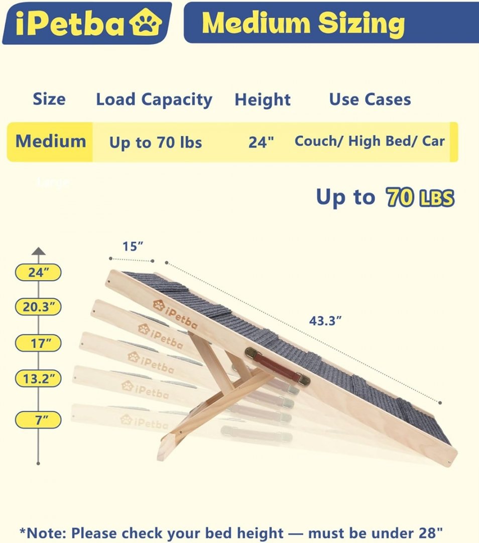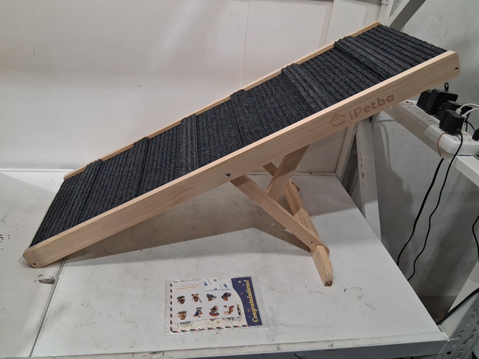 iPetba foldable Anti-Slip Dog Ramp - 70Lbs Max - Wood/Grey