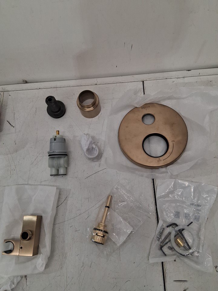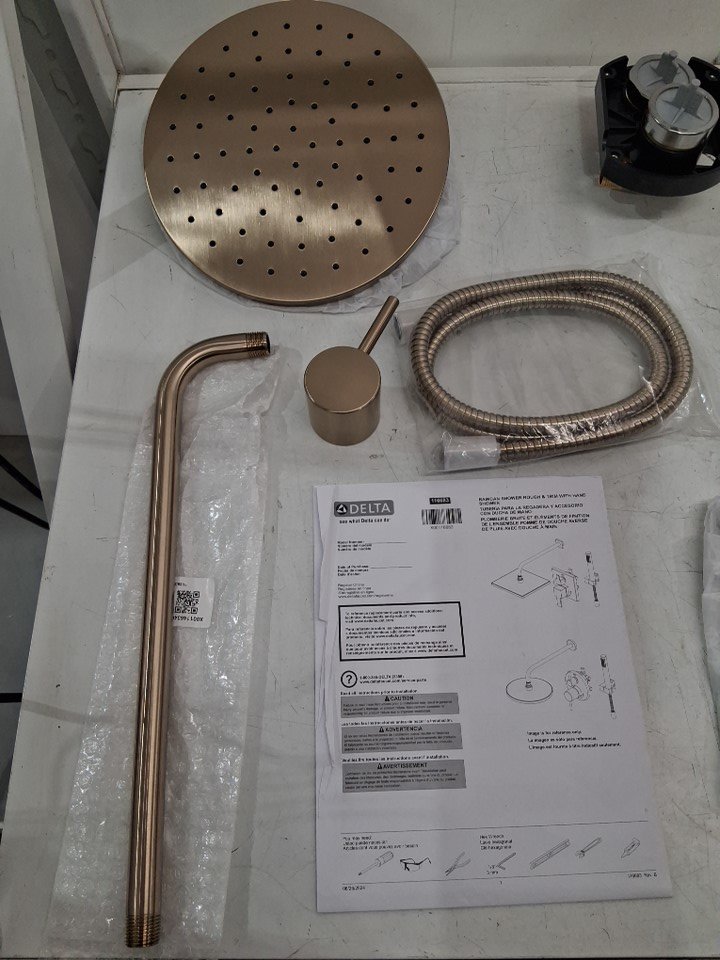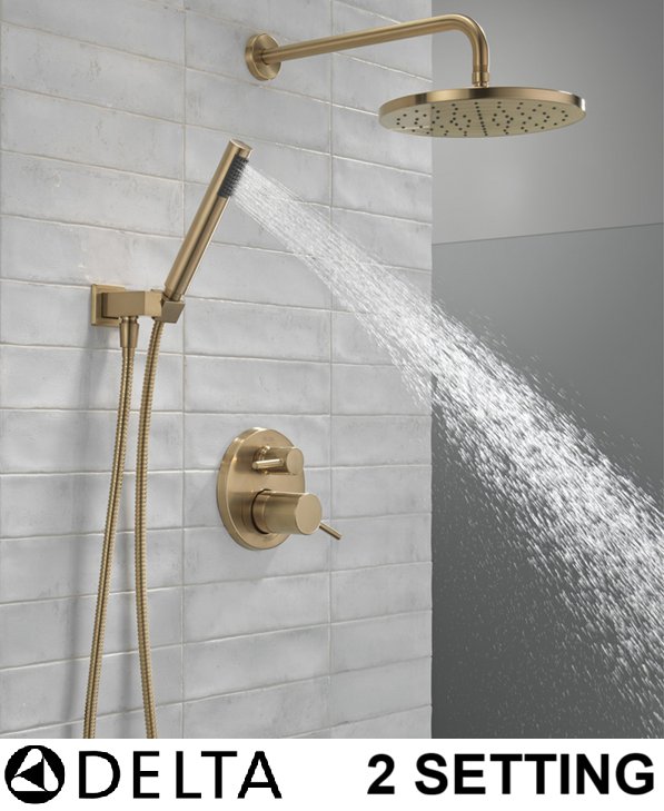 Delta Modern Raincan 2-Setting Round Shower System Including Rain Shower Head, Handheld Spray, Shower Valve and Trim Kit - Champagne Bronze (Model: 342702-CZ)