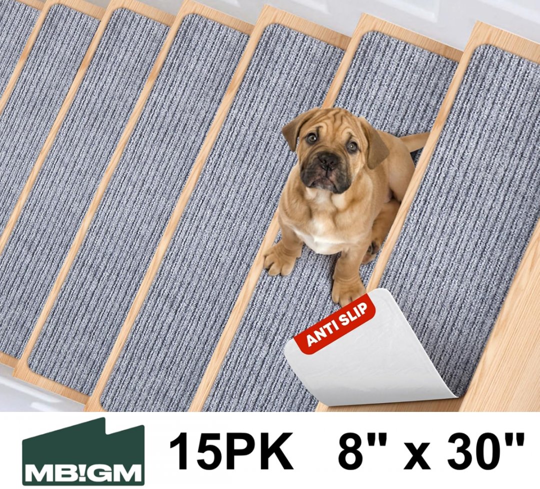 15PK MBIGM Non-Slip Safety Rug Adhesive Carpet Stair Treads - 8" x 30" - Grey