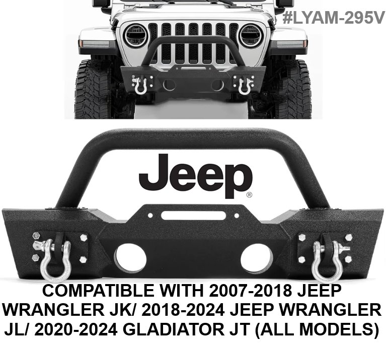 YIKATOO stubby front bumper with light housing and d-rings - fits select jeep models - black - (model: lyam-2595)