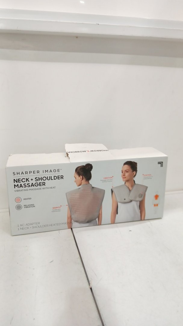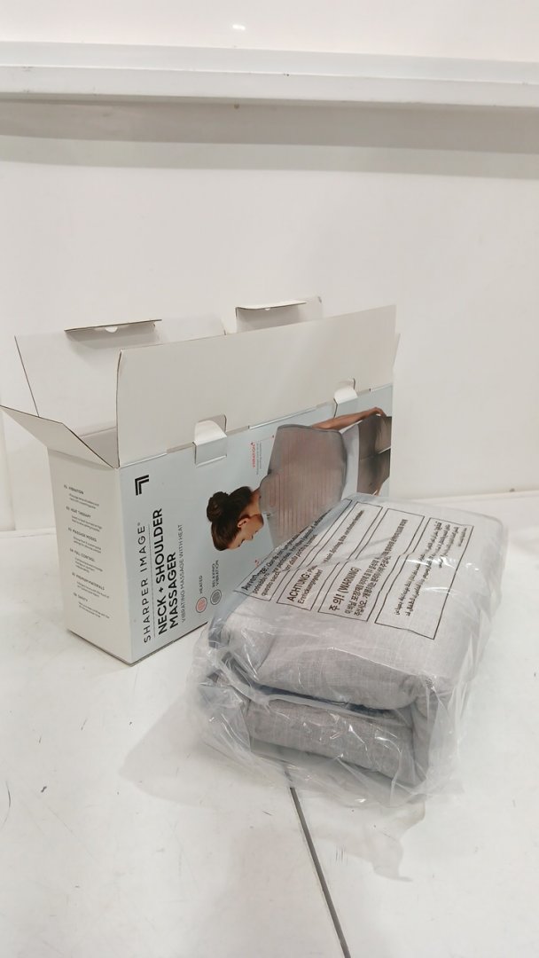 SHARPER IMAGE HEATED NECK AND SHOULDER vibrating MASSAGER - 30.7" x 18.9" - grey