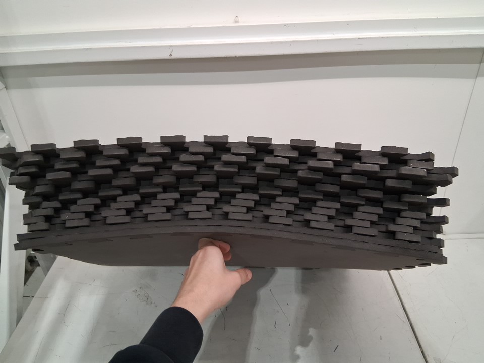 There is one mat with some imprint lines on it, some of the mats also have a bit of dust on them due to shipping. The majority of the mats look new.