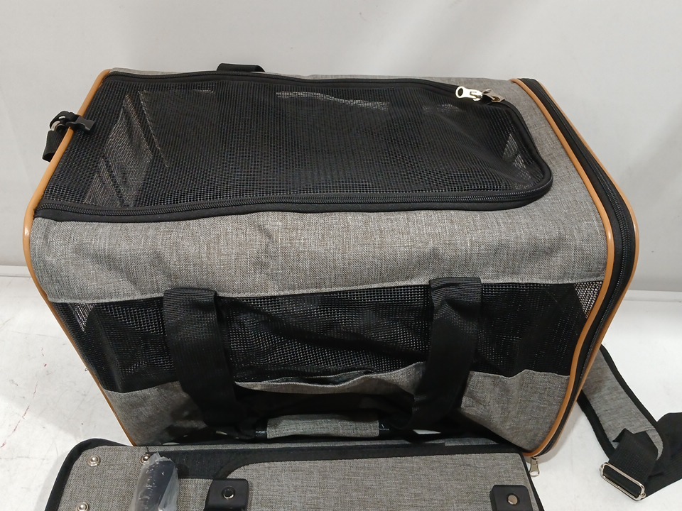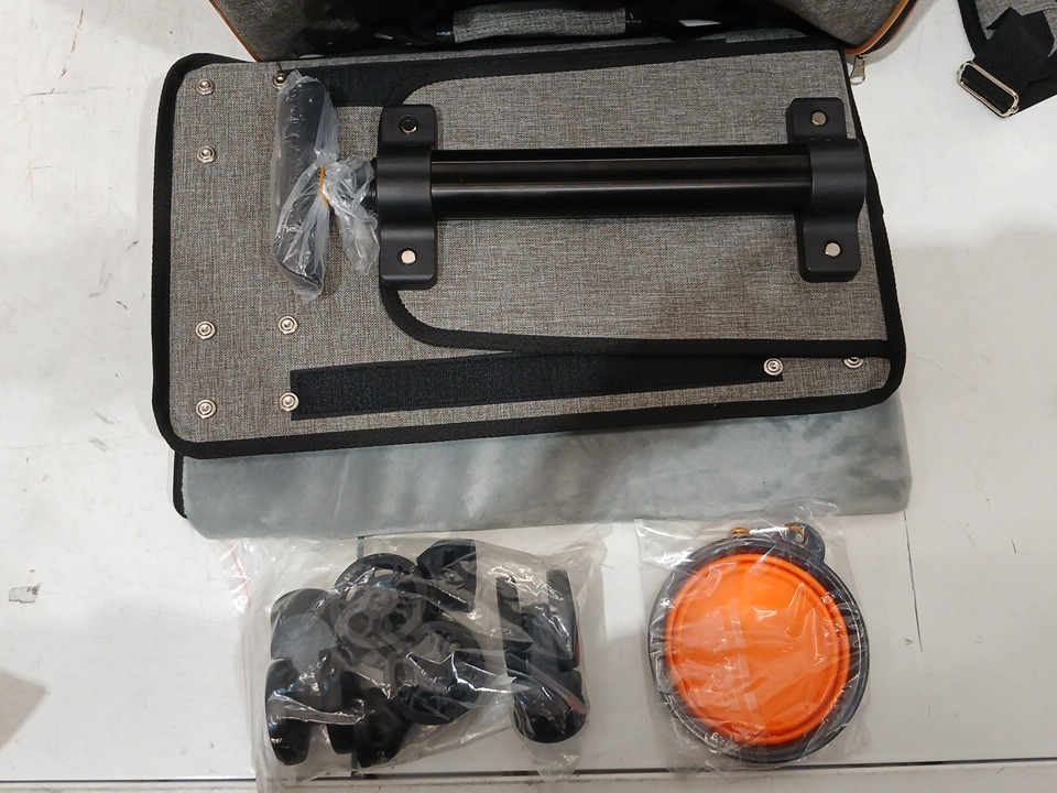 airline approved rolling pet carrier with bowl - 22lbs capacity - grey/black (Model: JW-XB21212255(218))