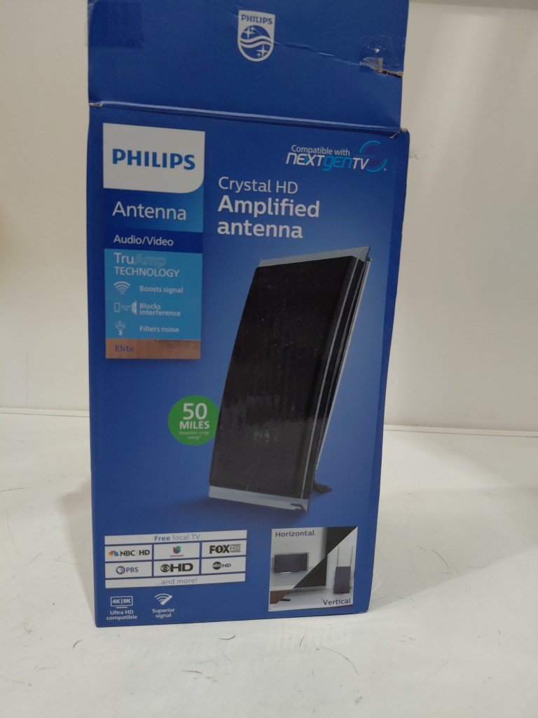 Philips Crystal Amplified Indoor TV Antenna, Extendable Dipole Rabbit Ears, 4K 1080P VHF UHF, Long Range, Amplifier Signal Booster, Digital HDTV Antenna, Smart TV Compatible, (MODEL: SDV3237N/27)