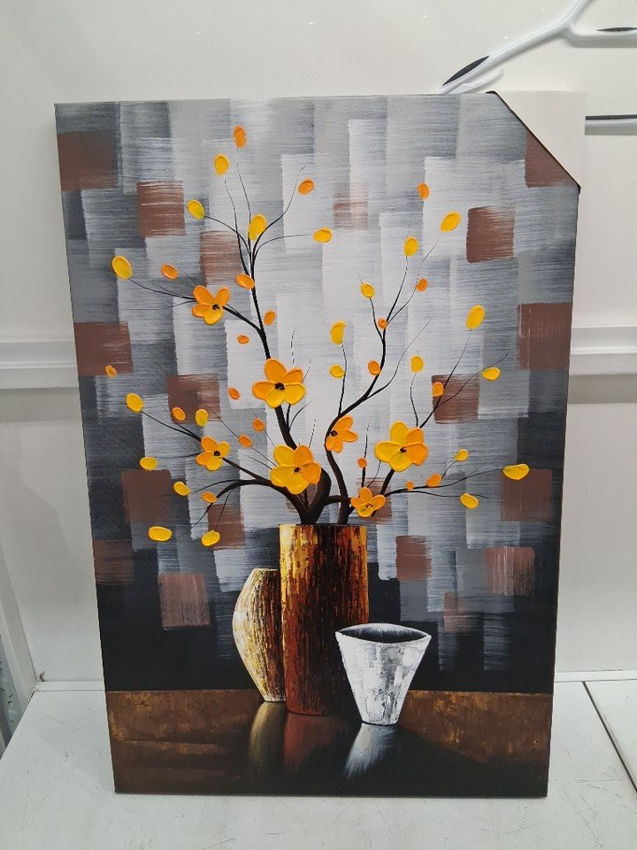 wieco art Silent Beauty Modern Contemporary Abstract Flower Oil Paintings on Canvas - 24" x 36" - grey/brown/yellow