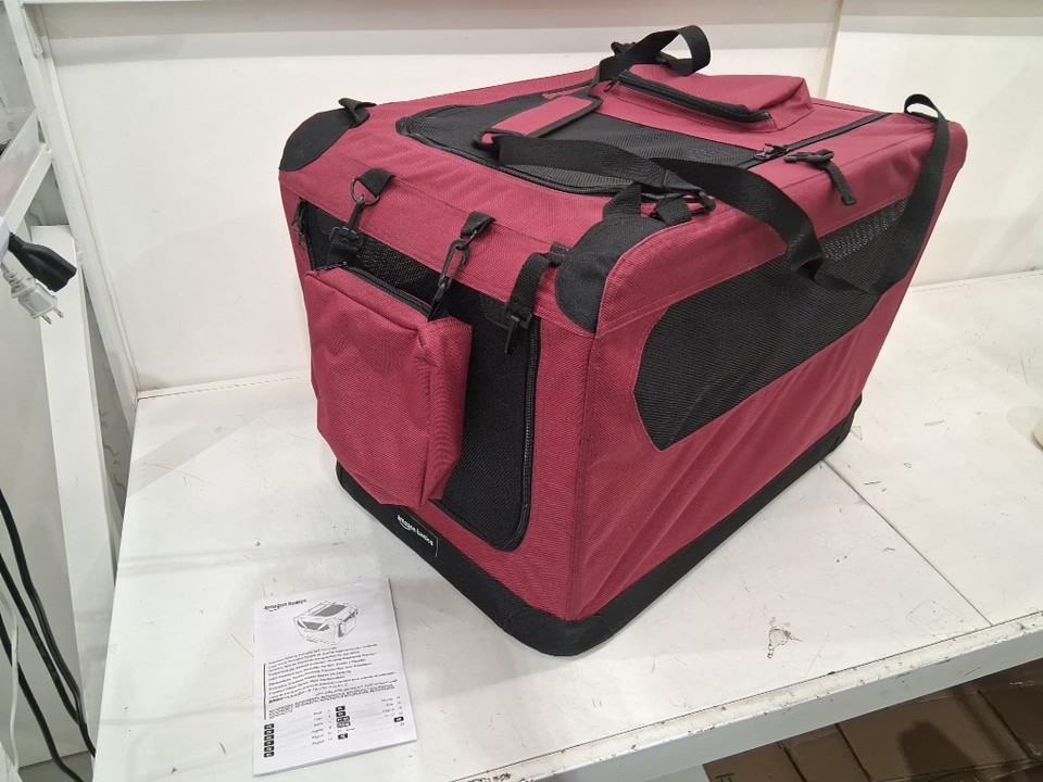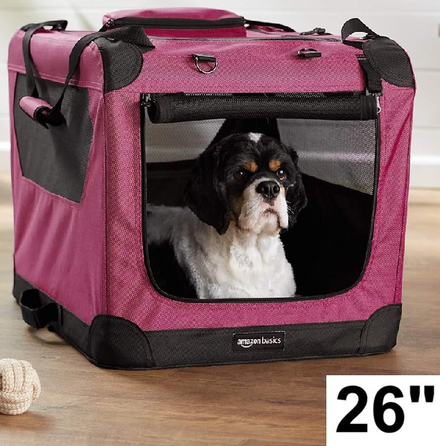 AMAZON BASICS PREMIUM FOLDING PORTABLE SOFT PET DOG CRATE CARRIER KENNEL - 26" x 18" x 18" - RED (Model: 12002-26RD-APL)