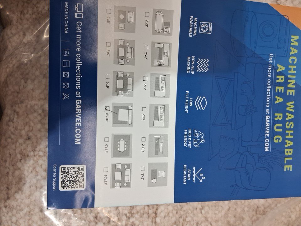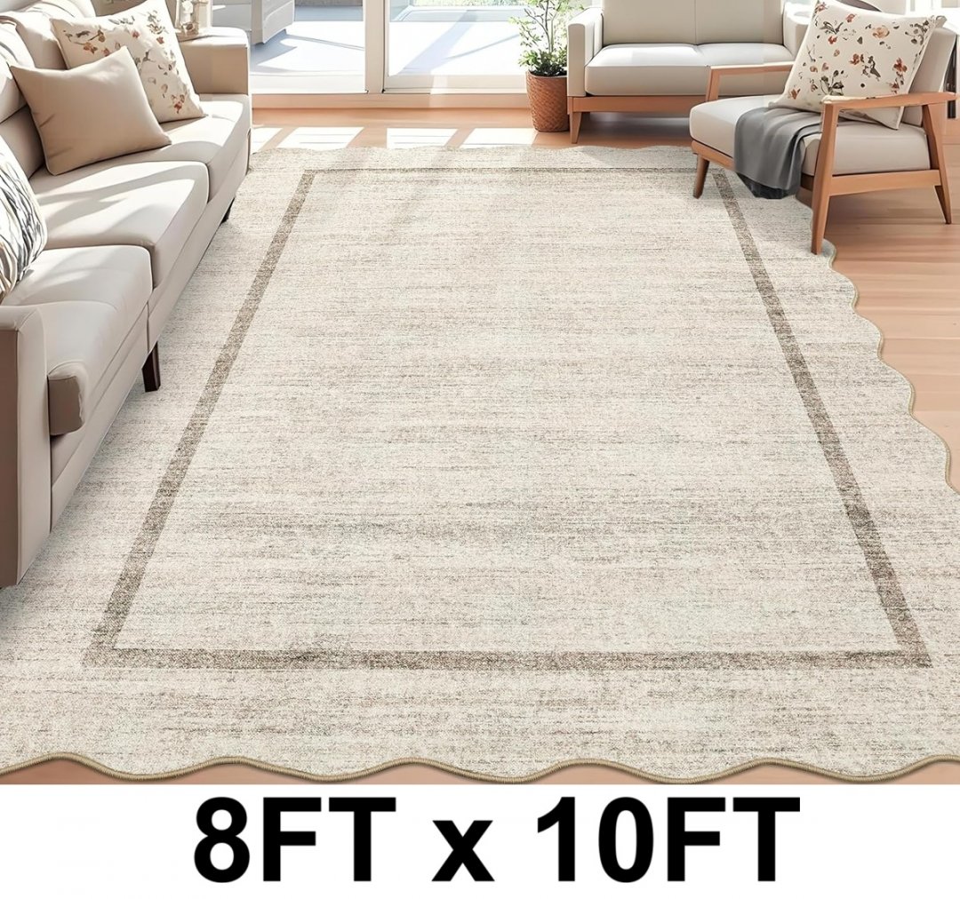 Garveehome washable scalloped low pile area rug - 8ft x 10ft - beige