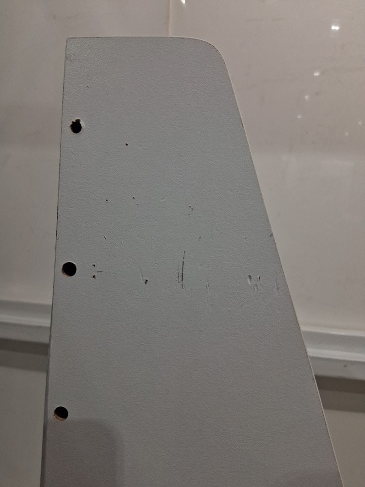 one of the side boards has a few light scratches from shipping on inside of panel additional general hardware may be required for full asembly