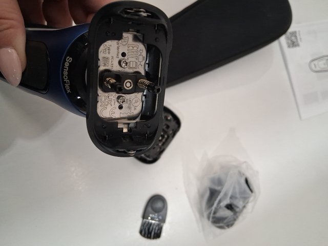 There are some hairs on the blade, and it also shows signs of dirt indicating prior use tested for power.